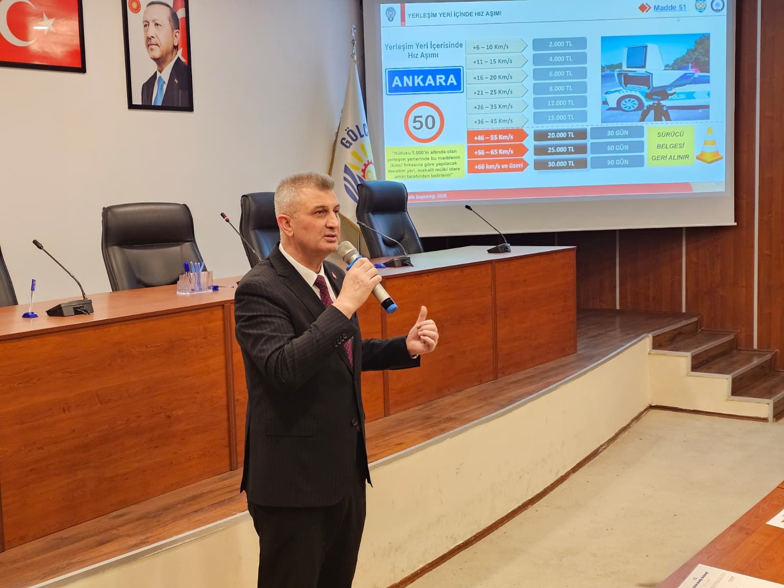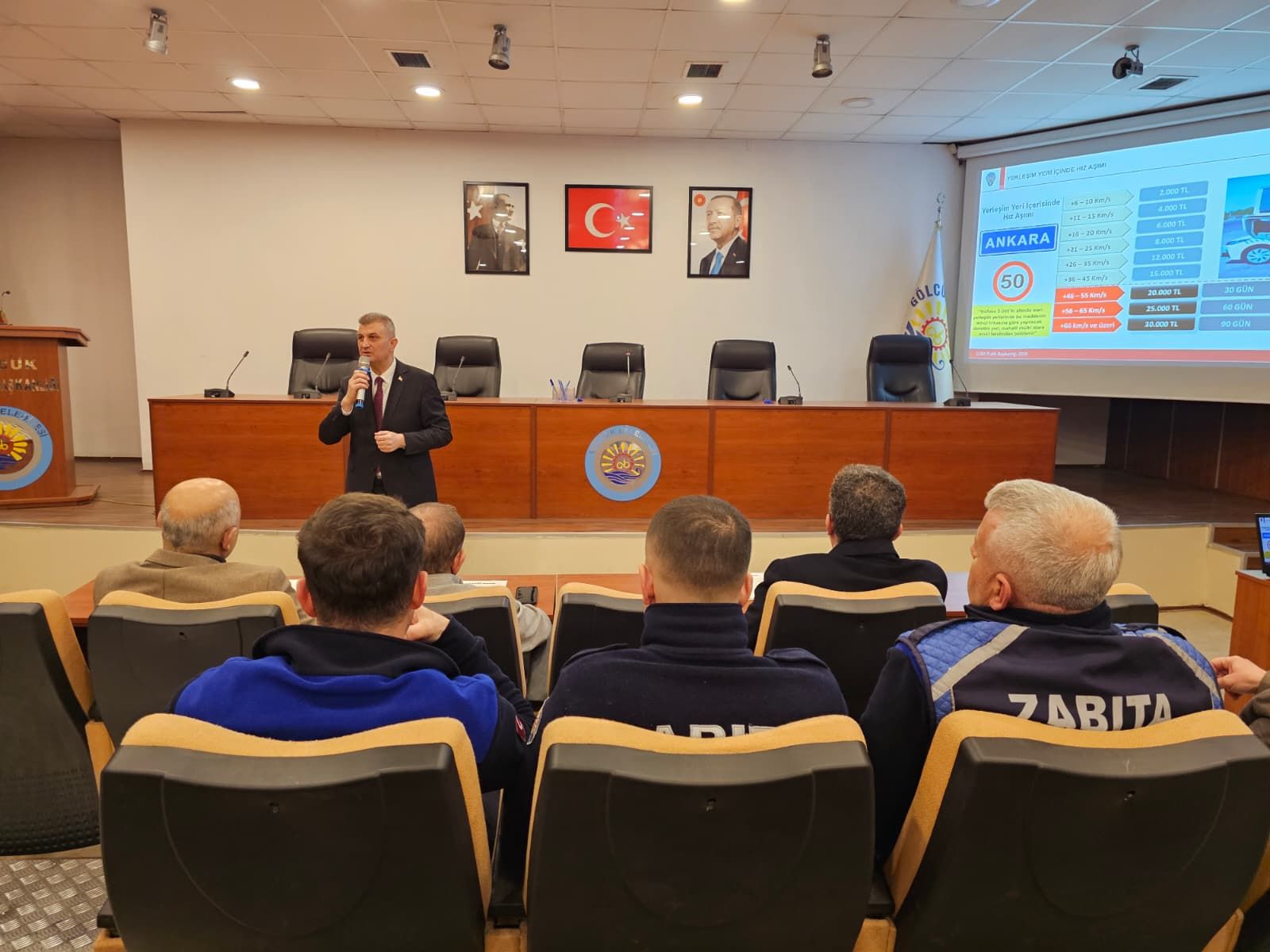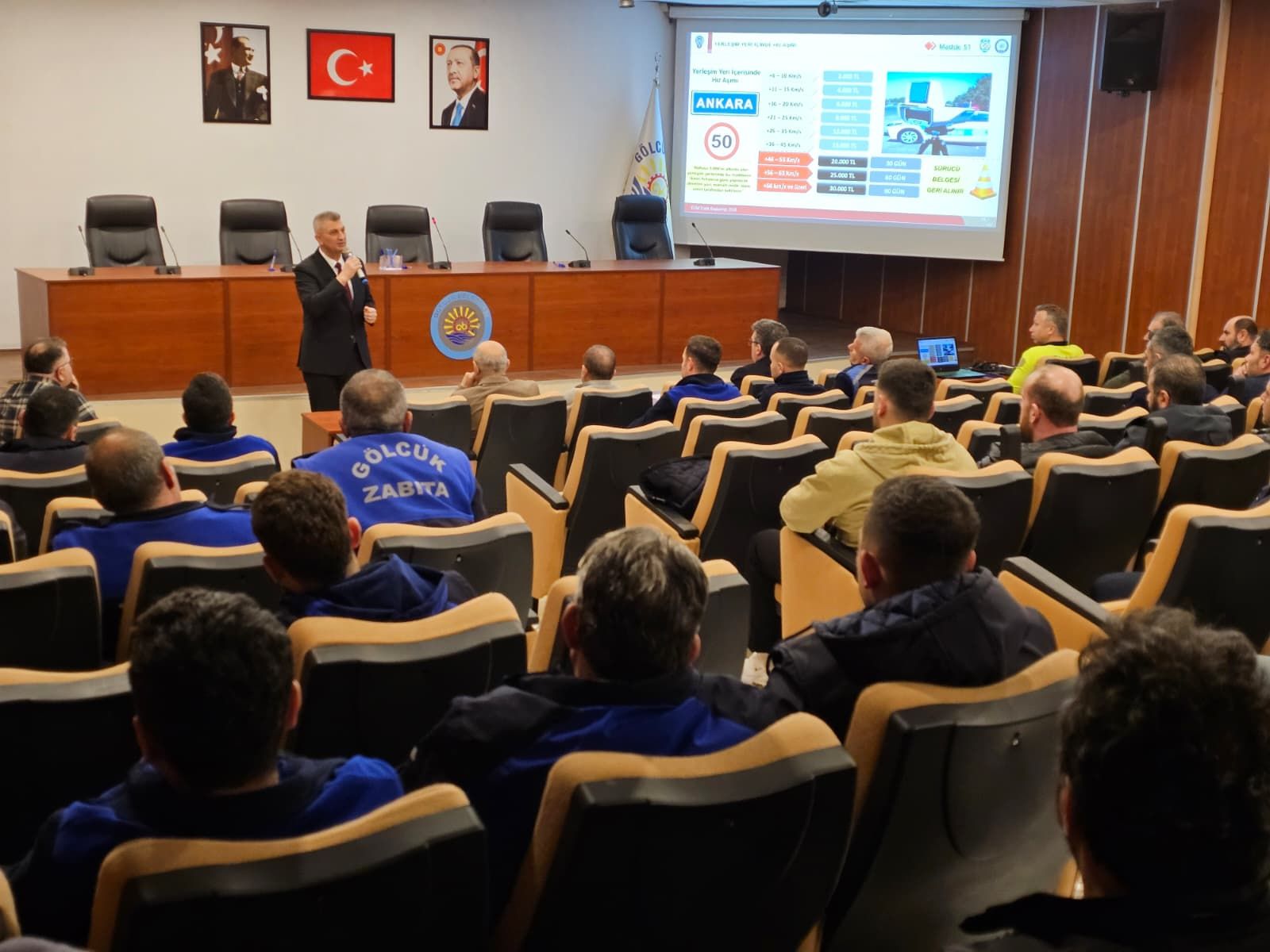 Meclis salonunda gerçekleştirilen eğitime Gölcük Belediye Başkanı Ali Yıldırım Sezer de katıldı. Eğitimde; hız kuralları ve sınırları, trafikte geçiş üstünlüğü, geçiş kuralları, trafikte asli kusurlar ve dikkat edilmesi gereken kurallar trafik polisleri tarafından detaylı bir şekilde anlatıldı.