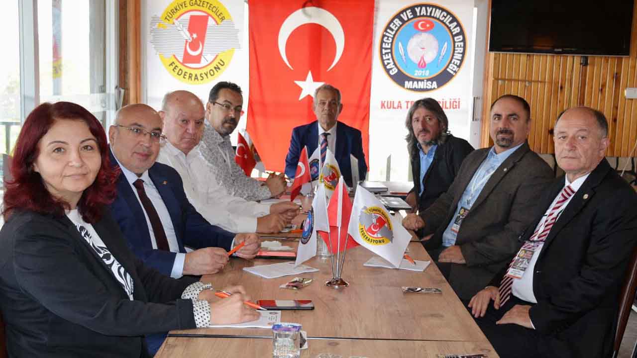 Türkiye Gazeteciler Federasyonu Yönetim Kurulu, Manisa’nın Kula ilçesinde toplandı. Manisa Gazeteciler ve Yayıncılar Derneği’nin ev sahipliğindeki toplantıya Genel Başkan Yılmaz Karaca, Genel Başkan Vekili Cafer Esendemir, Genel Sekreter Bayram Ekici, Genel Başkan Yardımcısı Levent Altun, Mali Sayman Derya Akbıyık, Genel Sekreter Yardımcıları Ercihan Çakmak ve Semra Şener, Yönetim kurulu üyesi Alaettin Yakın katıldı.