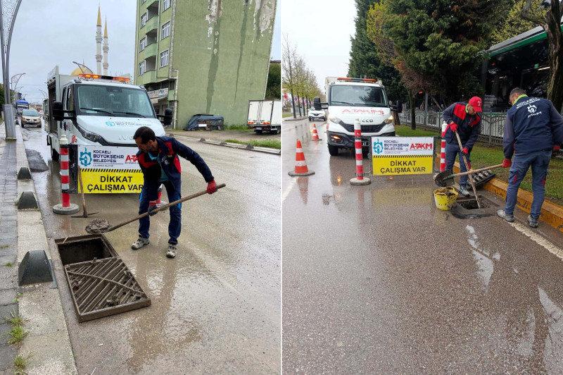 Kocaeli Büyükşehir Belediyesi Yol ve Bakım Dairesi A Takımı ekipleri, mazgallarda biriken çamur, yaprak ve atıkları temizleyerek suyun sağlıklı şekilde tahliye edilmesini sağlıyor. Bu sayede yağış sonrası oluşabilecek su birikintileri ve taşkın riskine karşı önlem alınmış oluyor.