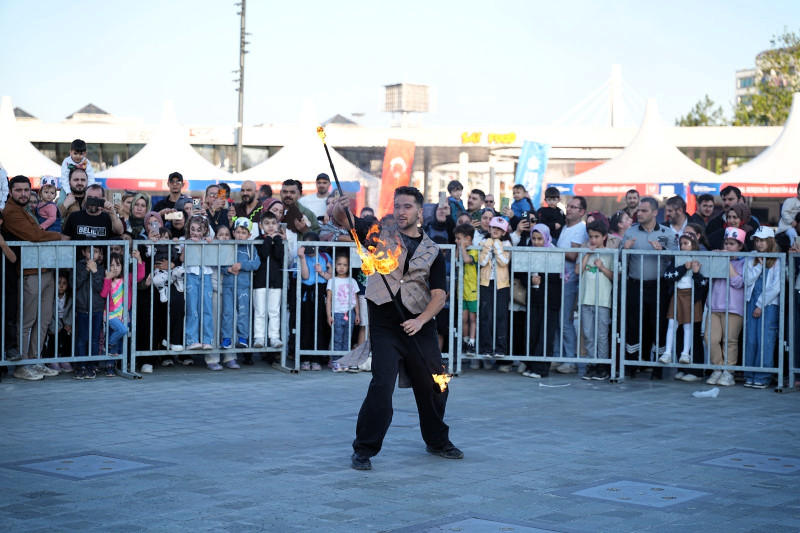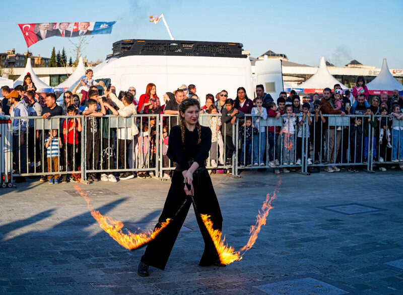 Etkinlikte çocuklar, kendilerine özel ayrılan bölümde gösteriyi izlerken, aileleri de onları yakından takip etti. Gösteride dansçılar, iplerin ucuna asılı ateş toplarını havada çevirerek izleyenlerden büyük alkış aldı. Ayrıca ateşbazların performansları heyecanı artırdı. Çocuklar, ağzından ateş çıkaran dansçıları dikkatle izleyerek gösterinin keyfini çıkardı.