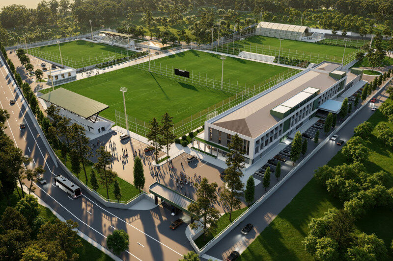 Toplam 74 bin 500 metrekare alanda kurulan ve 14 bin 800 metrekare kapalı alanı bulunan tesis, futbol sahalarının yanı sıra tenis ve basketbol sahalarıyla da hizmet verecek. Projede; hibrit, doğal ve sentetik zeminli 7 çim sahanın yapımı sürdürülüyor.