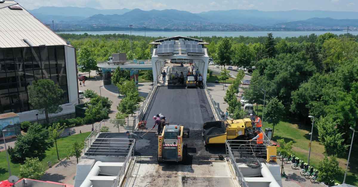 Kocaeli Büyükşehir tarafından bakım ve onarımı yapılan İzmit Mimar Sinan Üst geçidinde zemin asfaltlanmasına başlandı
